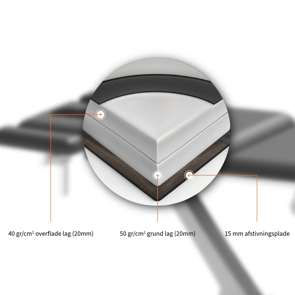 • Højdeområde: 43 – 93 cm, fuld slaglængde på ca. 14 sekunder.