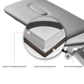 • Brugervenlig: Briksen har en fast liggeflade med en skumdensitet på 40 kg pr. m³, hvilket giver både støtte og komfort til patienterne.