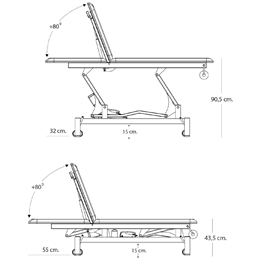 • Elektriske Funktioner: Højdejustering fra 43,5 cm til 90 cm med en vandringstid fra bund til top på 33,5 sekunder.