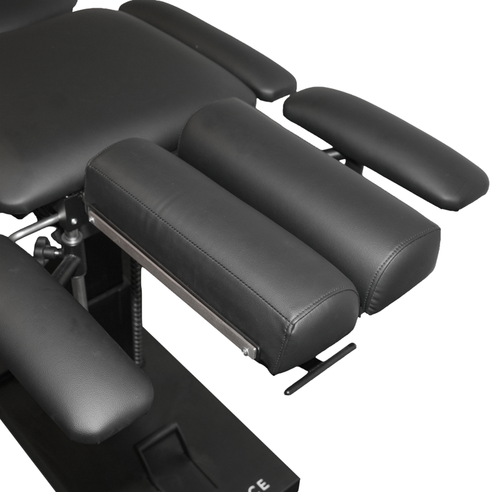 Kiro/Fys hybrid-udgaven bygger på Kiro-platformen (7-delt briks med elektrisk højdejustering, drop, rotation m.m.), men er tilpasset til brug på tværs af kiropraktik og fysioterapi – herunder med en opdateret/udskiftelig løsning i hovedsektionen (headrest change), så briksen kan konfigureres efter klinikkens behov.