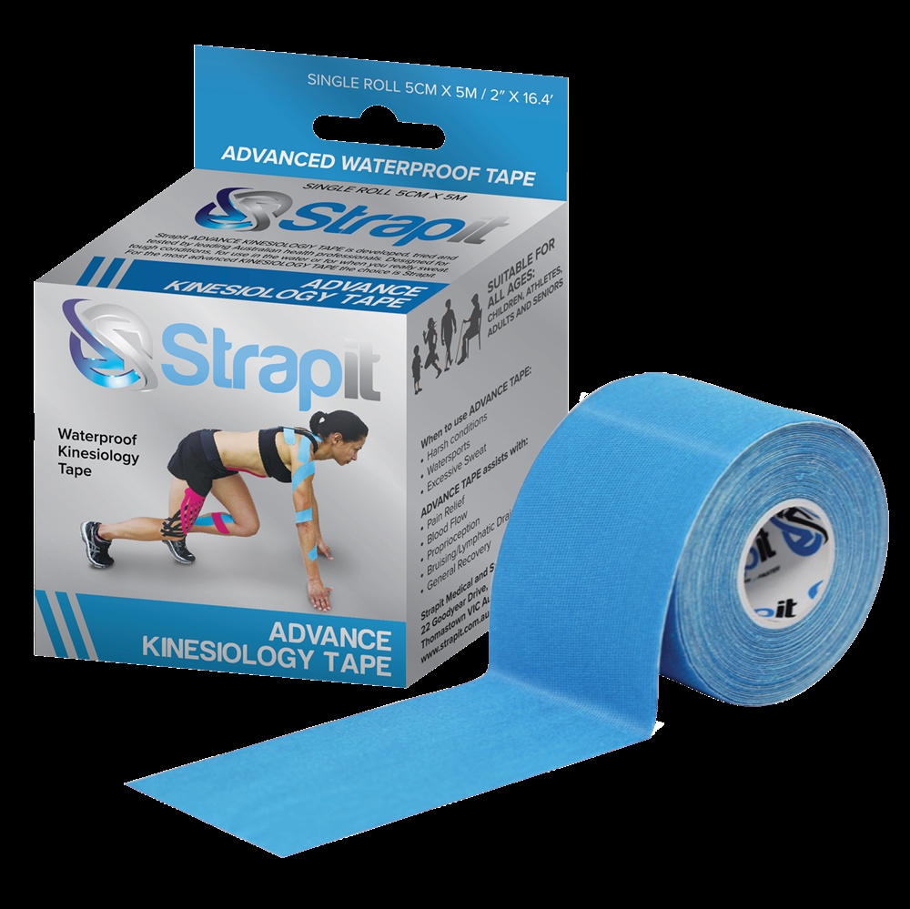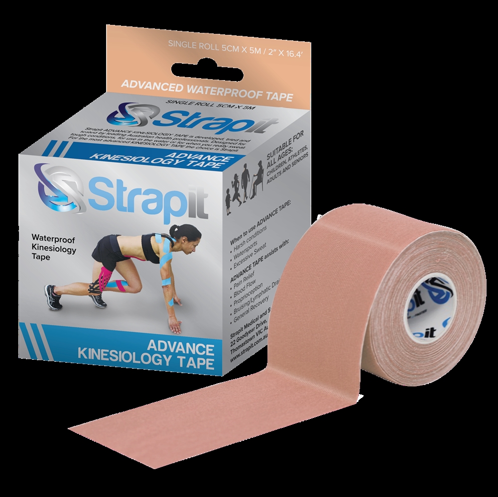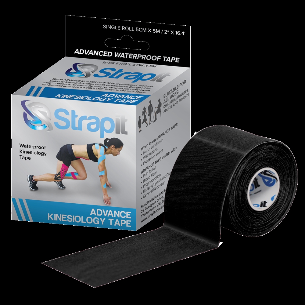 Strapit Advance er en vandfast kinesiology tape udviklet til sport, træning og aktivitet under krævende forhold, hvor der stilles høje krav til holdbarhed, vedhæftning og funktion. Tapen er særligt velegnet til aktive brugere og atleter, som træner i våde miljøer, sveder meget eller udsætter tapen for hård belastning. I modsætning til traditionelle kinesiotapes med bomuldsbase er Strapit Advance fremstillet i et syntetisk performance-materiale af viscose og spandex, som gør tapen mere modstandsdygtig over for vand, sved og barske omgivelser. Kombinationen af det tekniske materiale og en ekstra stærk klæbeevne giver en tape med meget høj holdbarhed under krævende træning og konkurrence.
