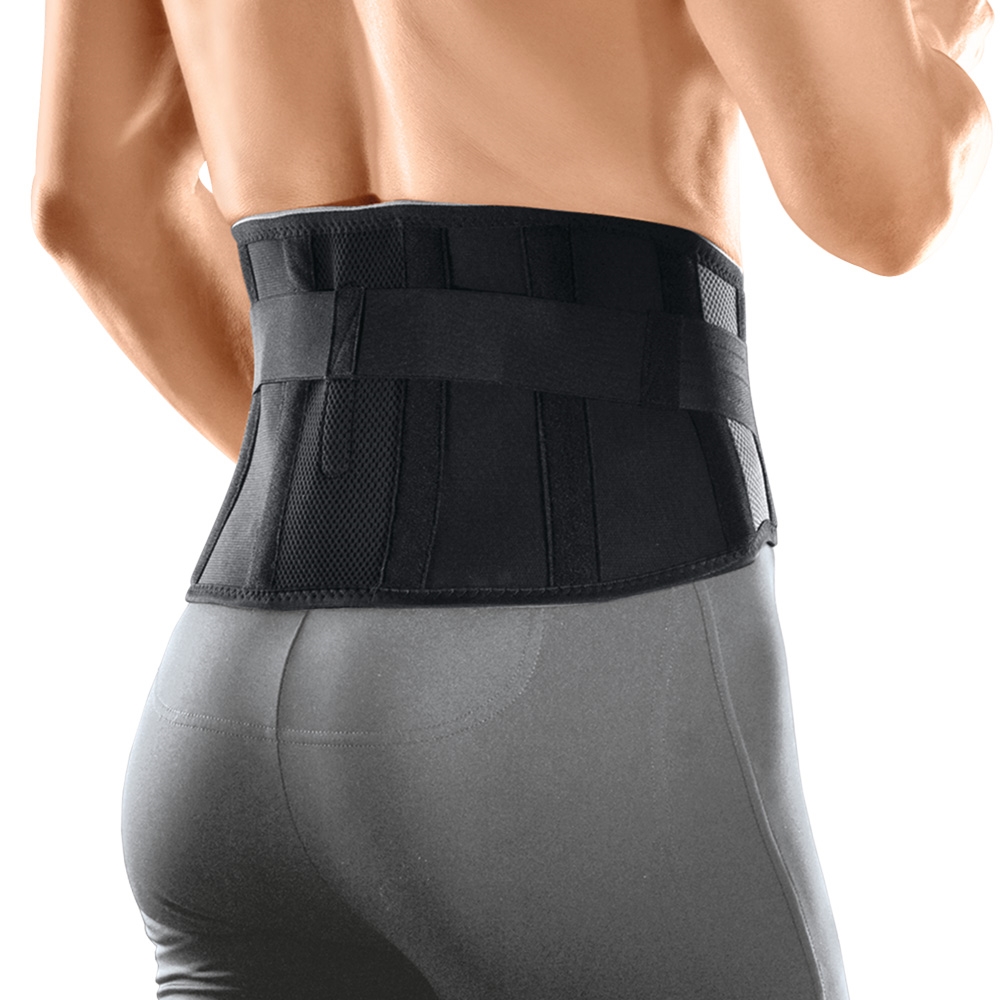 Lændebandage med nopret pelotte og justerbare opspændingsstroppe.